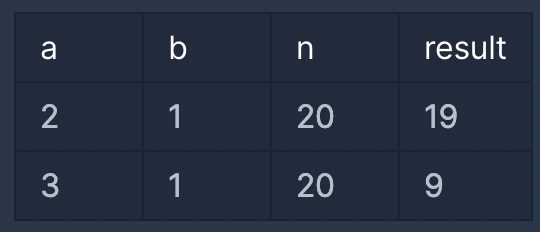 function solution(a, b, n) {
