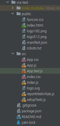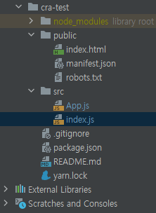 필요없는 png, css, js 파일들을 모두 제거하고 src directory에는 index.js, App.js 파일만을 남겨둔다.