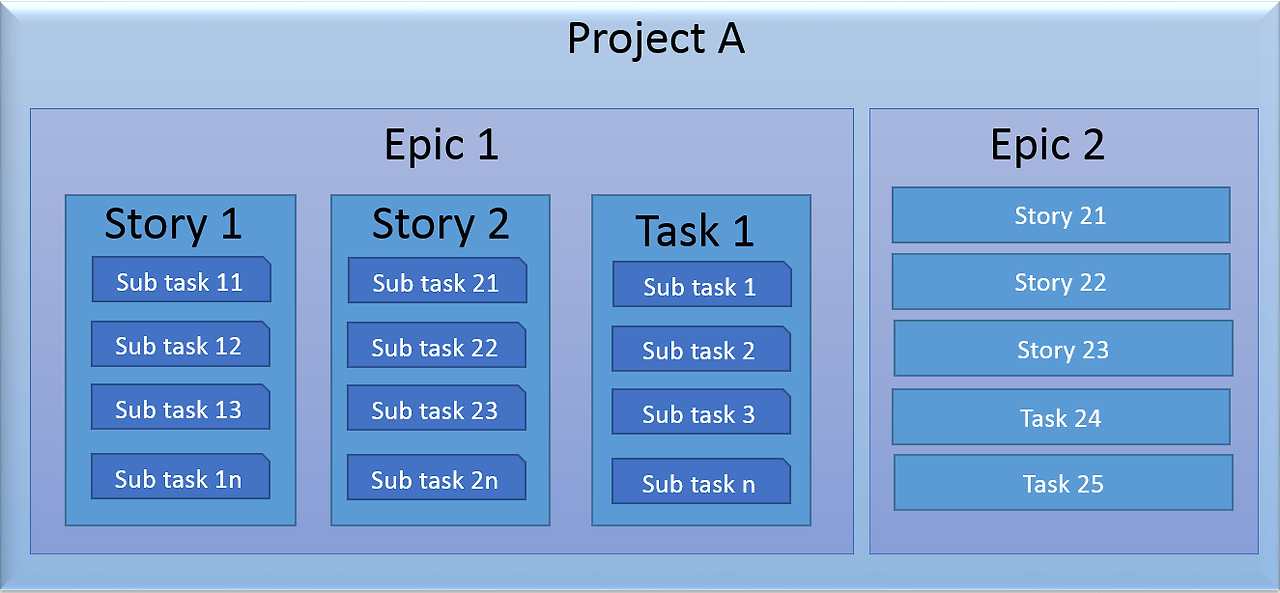 - Epic : 큰 단위의 업무 ( User Story, Task 등을 묶은 단위 )