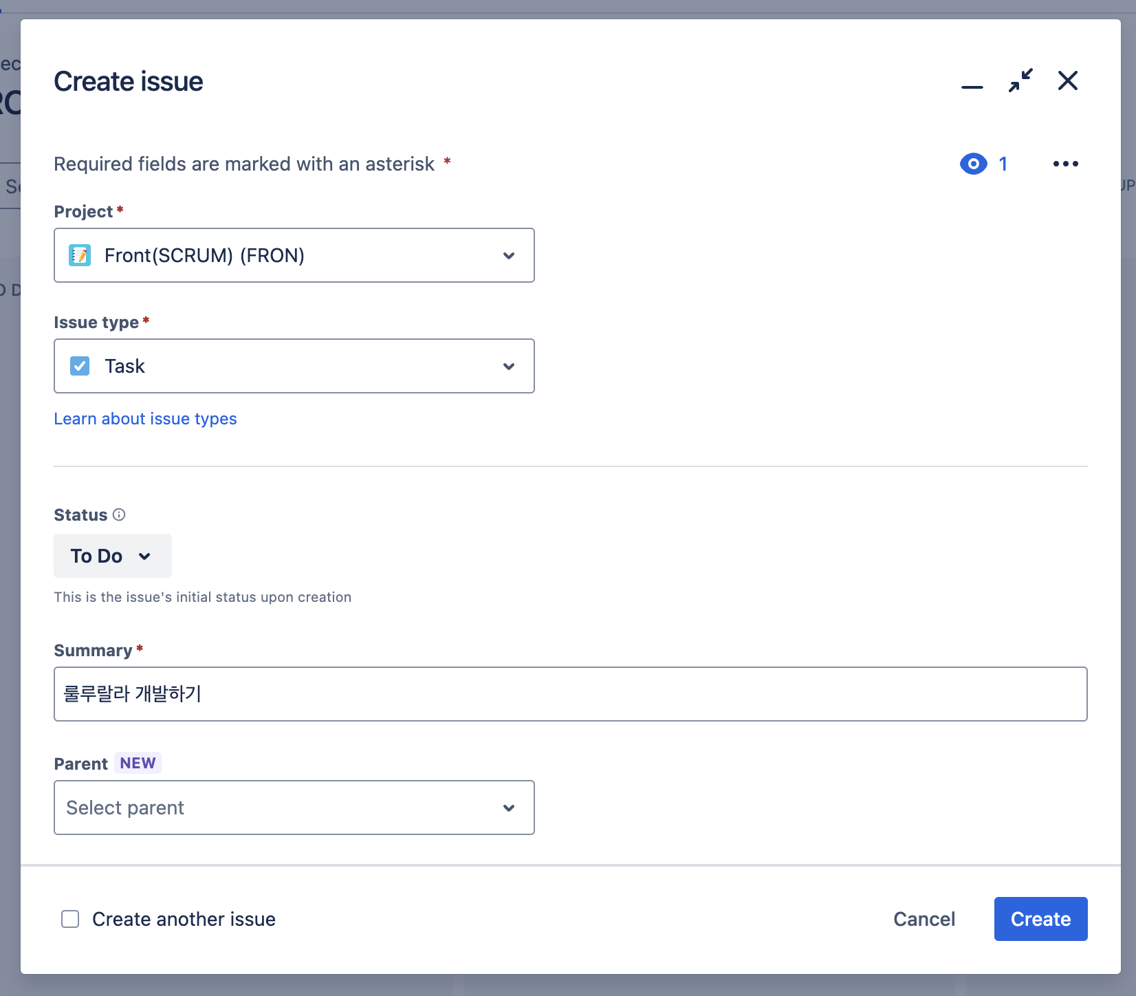 - workflow: 이슈의 상태 변화를 나타내는 프로세스 (ex] To Do -> In Progress -> Done)