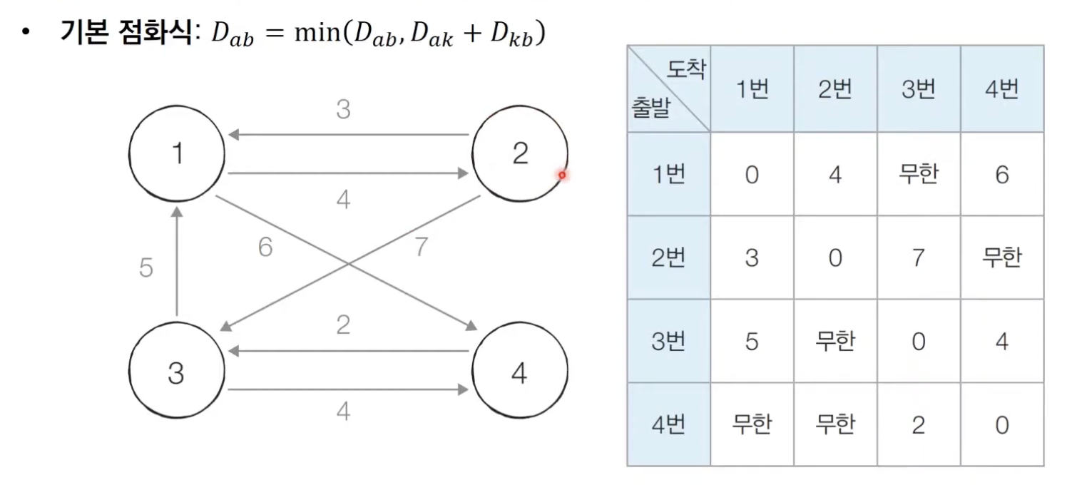 # 점화식에 따라 플로이드 워셜 알고리즘을 수행