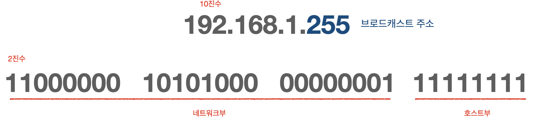 - ๋ธ๋ก๋์บ์คํธ ์ฃผ์: 192.168.1.255
