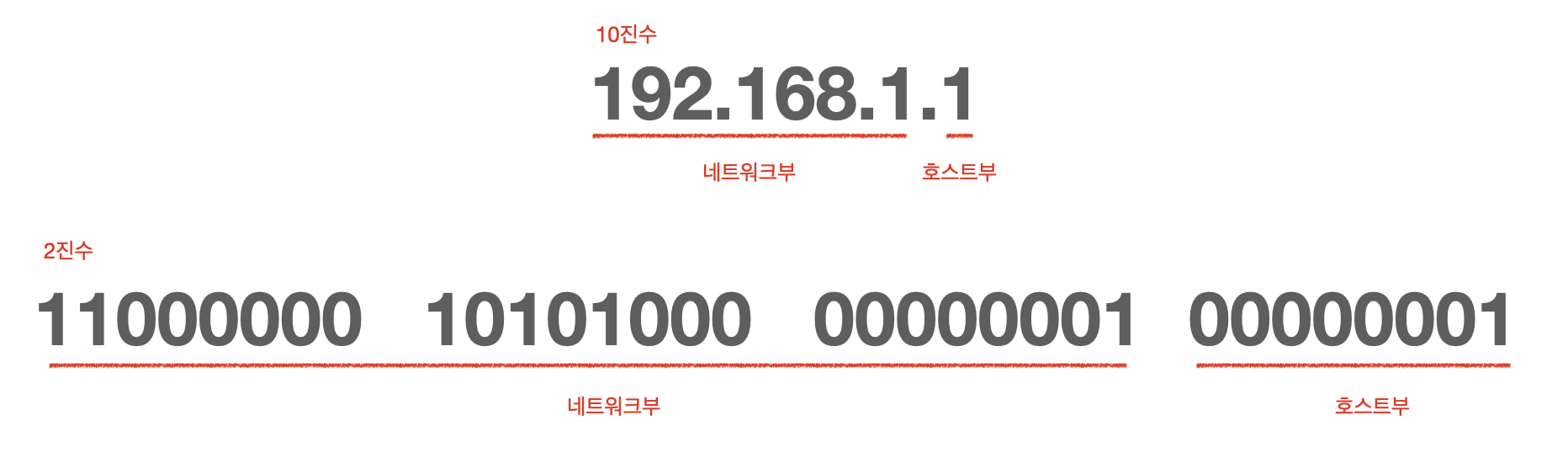 IPv4 ์ฃผ์๋ xxx.xxx.xxx.xxx ํ์์ผ๋ก ํ๊ธฐํ๋ค. ์ธ๊ฐ์ด ๋ณด๊ธฐ ์ฝ๊ฒ 10์ง์๋ก ํ๊ธฐํ์ง๋ง, ๊ทธ ์ค์ฒด๋ 8์๋ฆฌ 2์ง์ 4๊ฐ์ด๋ค. ๋ IP์ฃผ์๋ ๋คํธ์ํฌ๋ถ์ ํธ์คํธ๋ถ๋ก ๋๋๋ค. ๋คํธ์ํฌ๋ถ๋ ์ด๋ค ๋คํธ์ํฌ๋ฅผ ๋ํ๋ด๋ ์ ๋ณด์ด๋ฉฐ, ํธ์คํธ๋ถ๋ ๊ทธ ๋คํธ์ํฌ ์์ ์ปดํจํฐ๋ฅผ ํน์ ํ๋ ์ ๋ณด์ด๋ค. ์ด ๋๋ถ๋ถ์ผ๋ก IP์ฃผ์๊ฐ ๊ตฌ์ฑ๋๋ค.