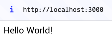 localhost:3000 에 접속하면 'Hello World!' 가 출력되는 것을 확인할 수 있다.
