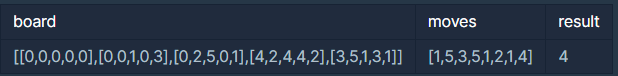 - moves 배열 각 원소들의 값은 1 이상이며 board 배열의 가로 크기 이하인 자연수입니다.